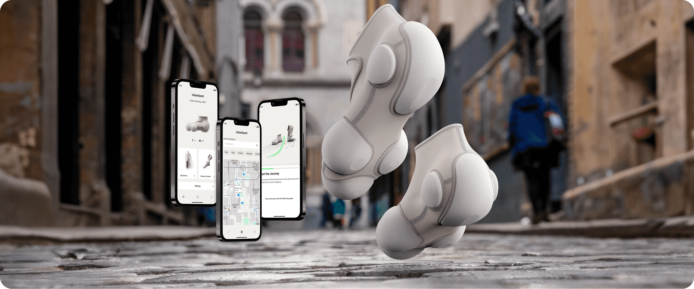 UrbanQuest transforms urban exploration with its innovative interactive footwear device and digital services. Step away from traditional navigation and enjoy a hands-free journey through the city.
