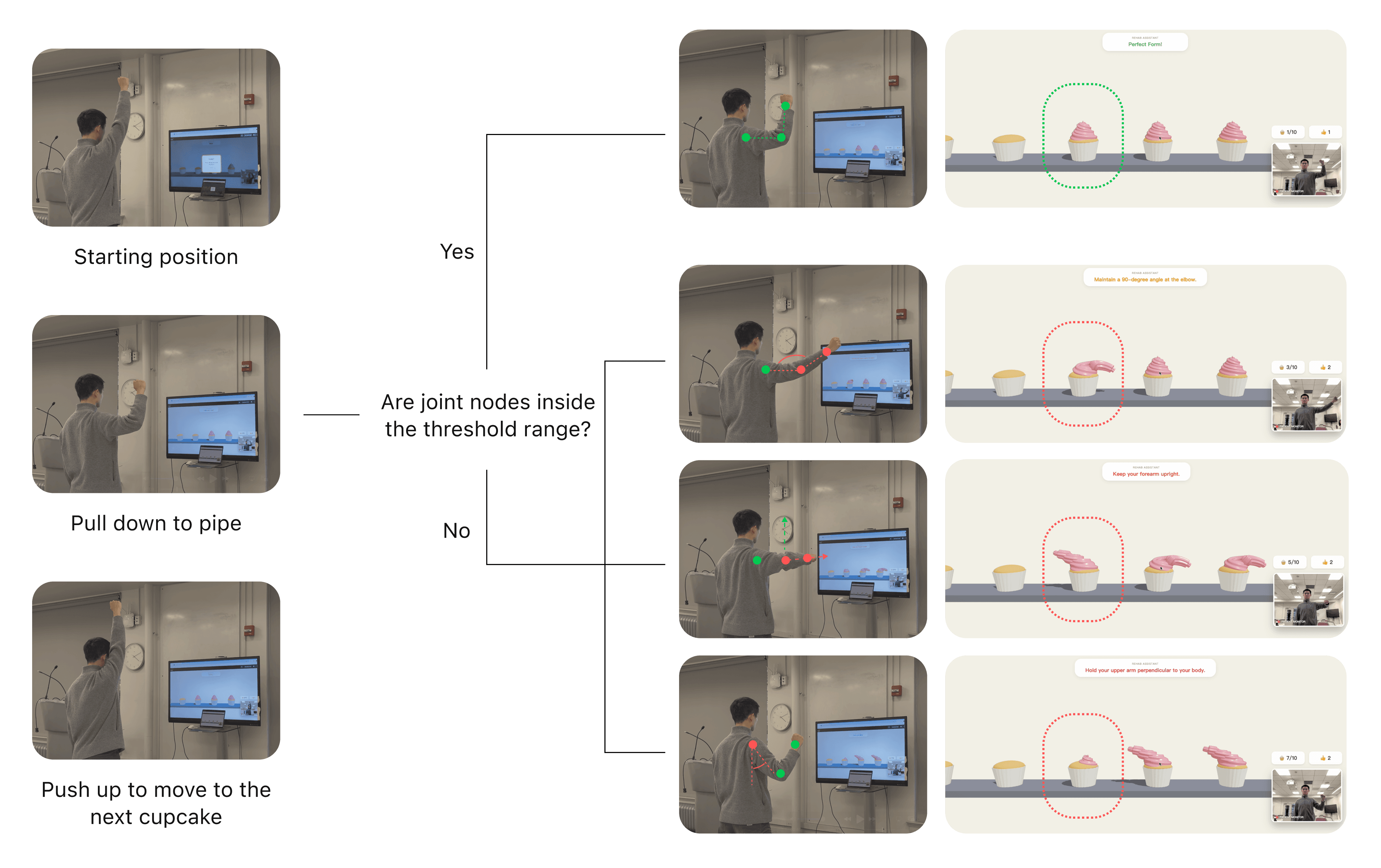 The gameplay stage closes the loop between movement and outcome, turning physical effort into immediate, visible feedback.