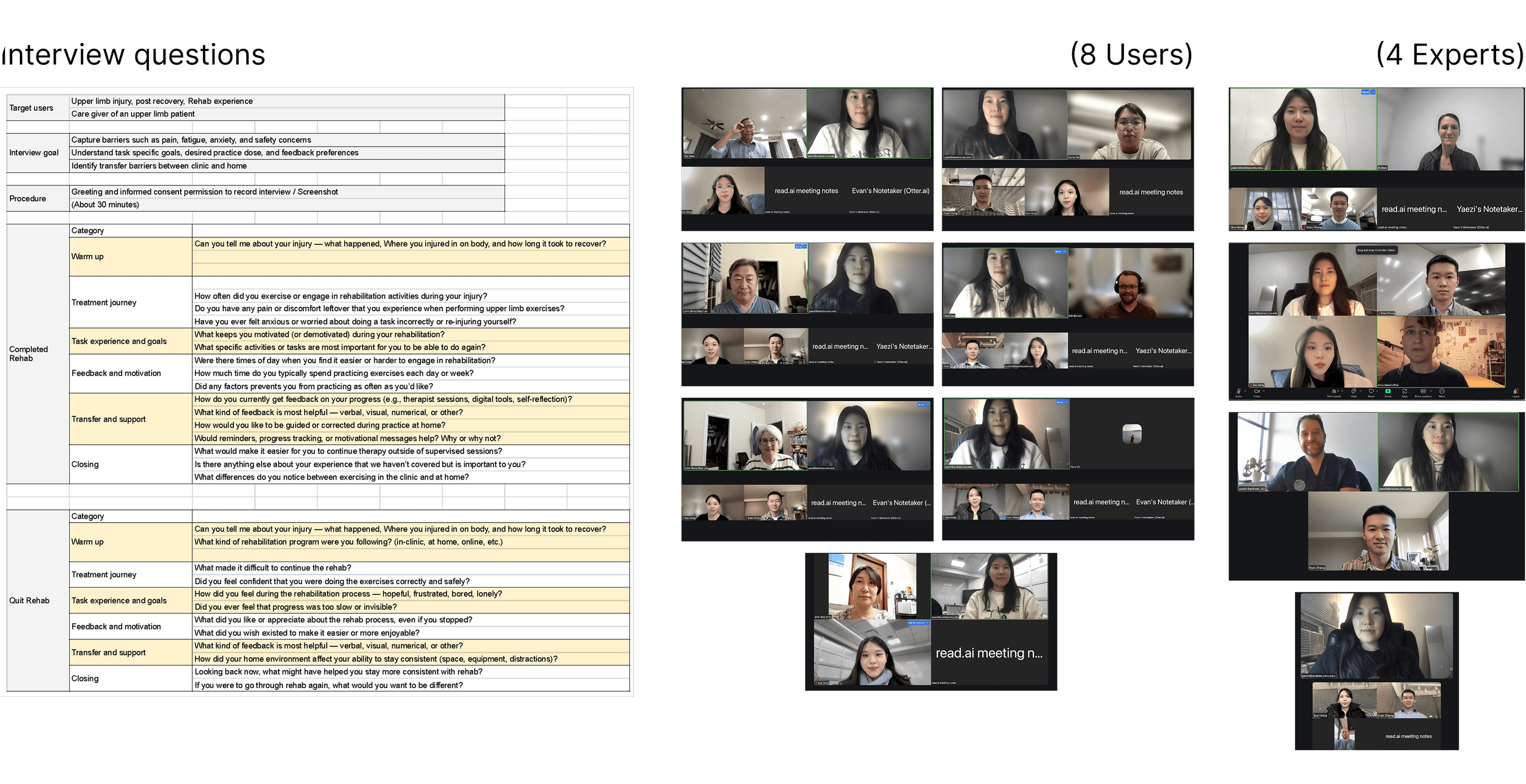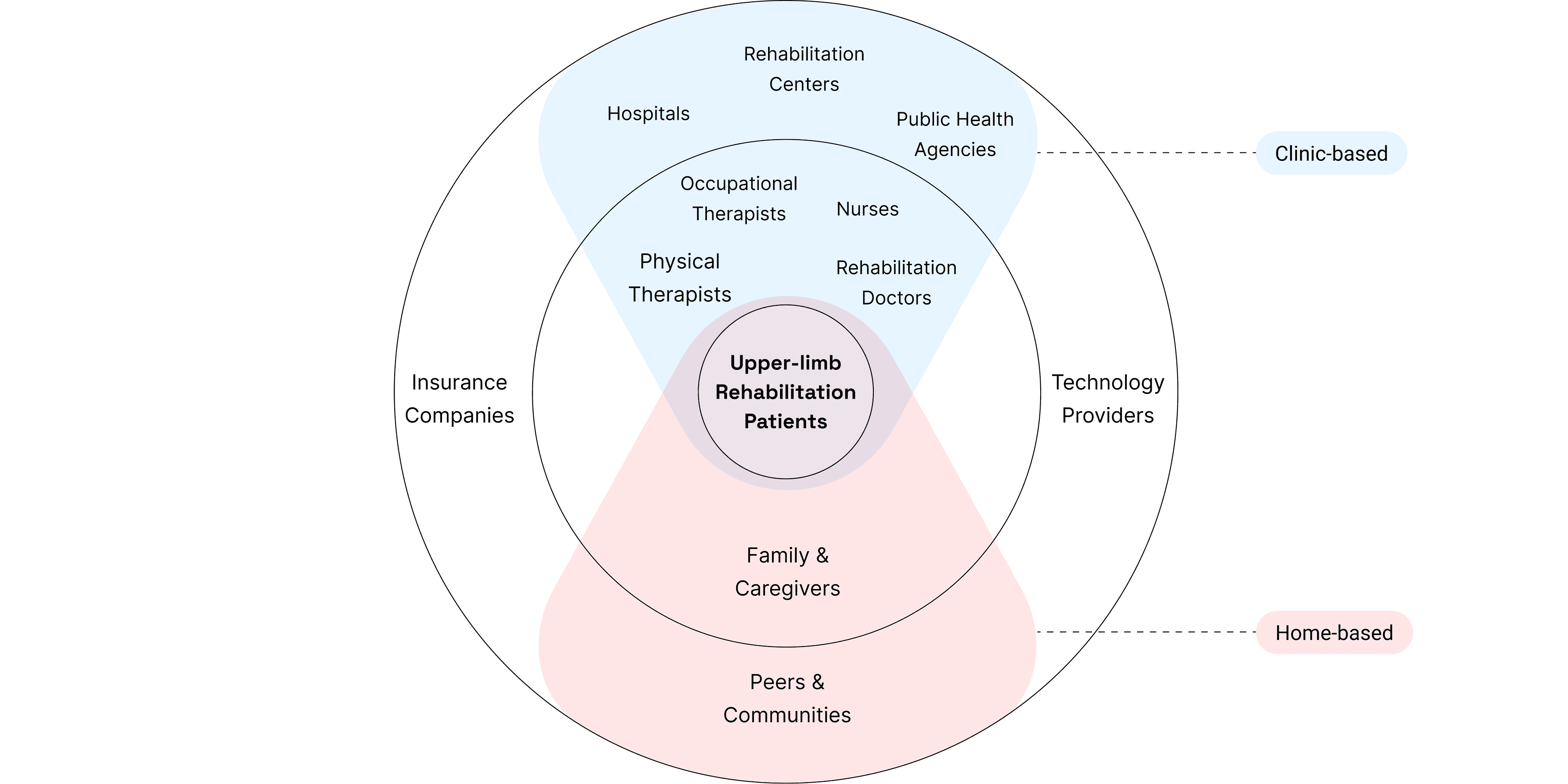 Our team mapped stakeholders to define scope and target users, focusing on adults aged 25 to 60 recovering from upper-limb injuries at home or had past experience. The map also helped us identify essential clinical perspectives from occupational therapists, physical therapists, and physicians to guide product decisions and ensure clinical relevance.