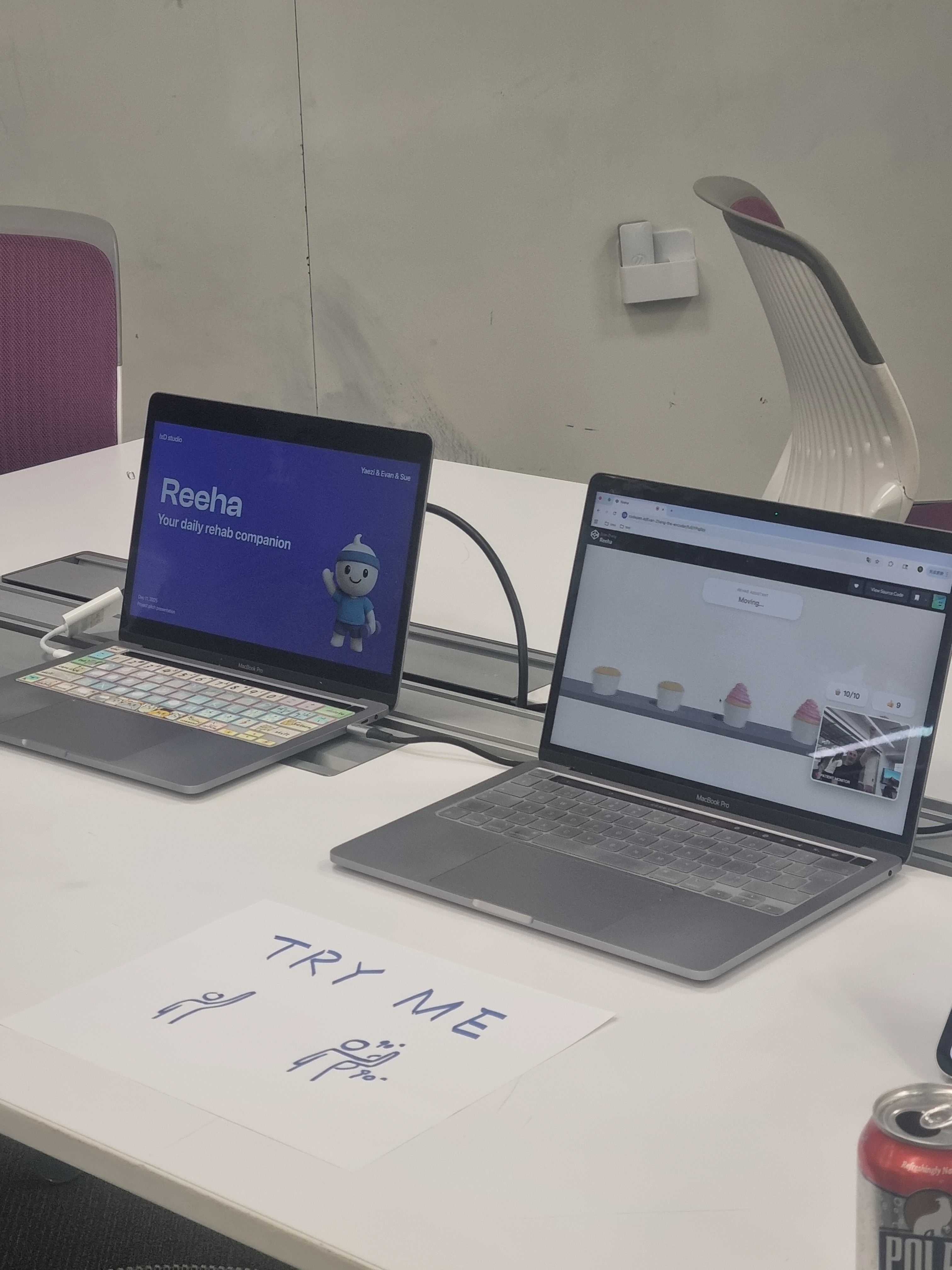 Reeha is a platform that makes home rehabilitation practices motivating and less mundane by integrating rehabilitations into gamified activities with interactive visual and audio feedback.