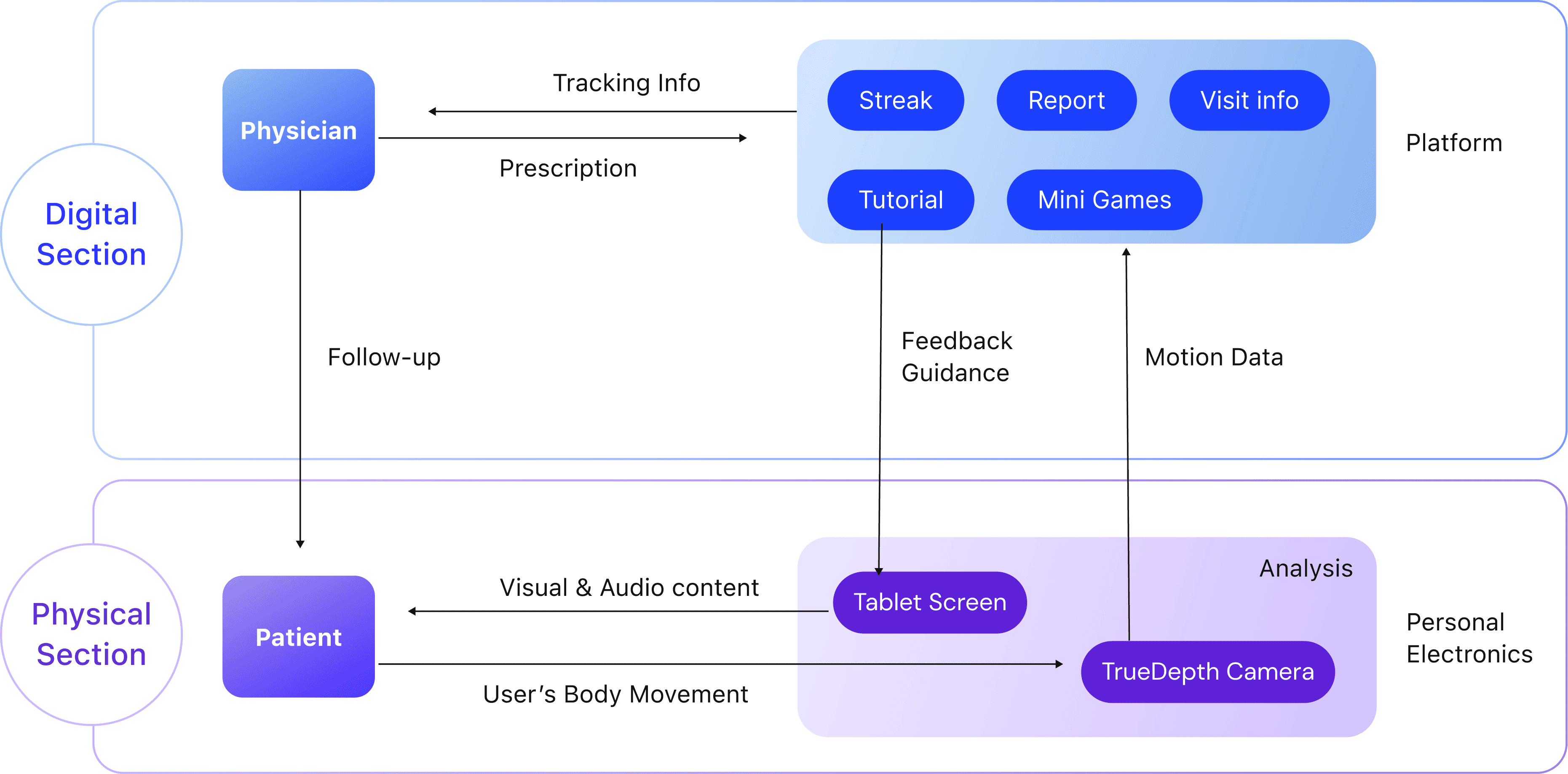 Through 8 user interviews and 4 expert interviews, we identified monotony, confusion, and disconnection from clinical guidance as key barriers to sustained home rehabilitation. Patients don’t just want to perform exercises correctly, they want to feel supported, understood, and able to see their progress over time.
