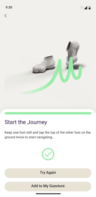 Users can learn new gesture commands on this page. Guided by on-screen animations and supported by motion sensors in the wearable device, users can practice in real time and receive immediate feedback.