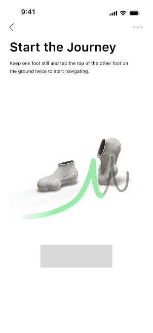 It provides navigation via foot vibrations, guided by GNSS positioning and motion data.