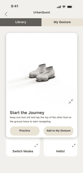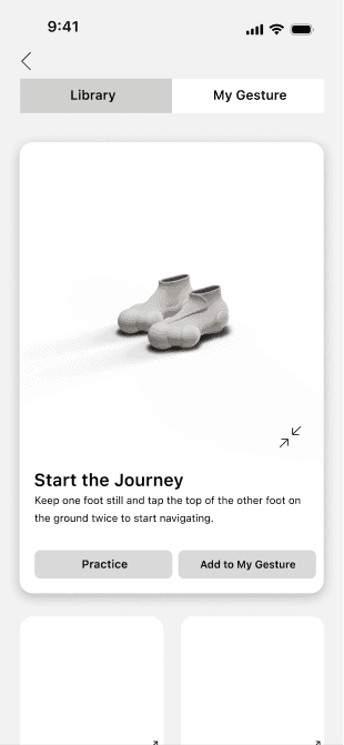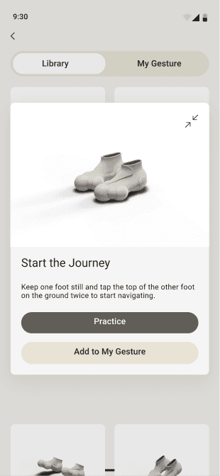 On this page, users can manage the interaction commands and corresponding foot gestures they want to use. After learning a new gesture, users can add it to their personal gesture library for quick access in everyday use.